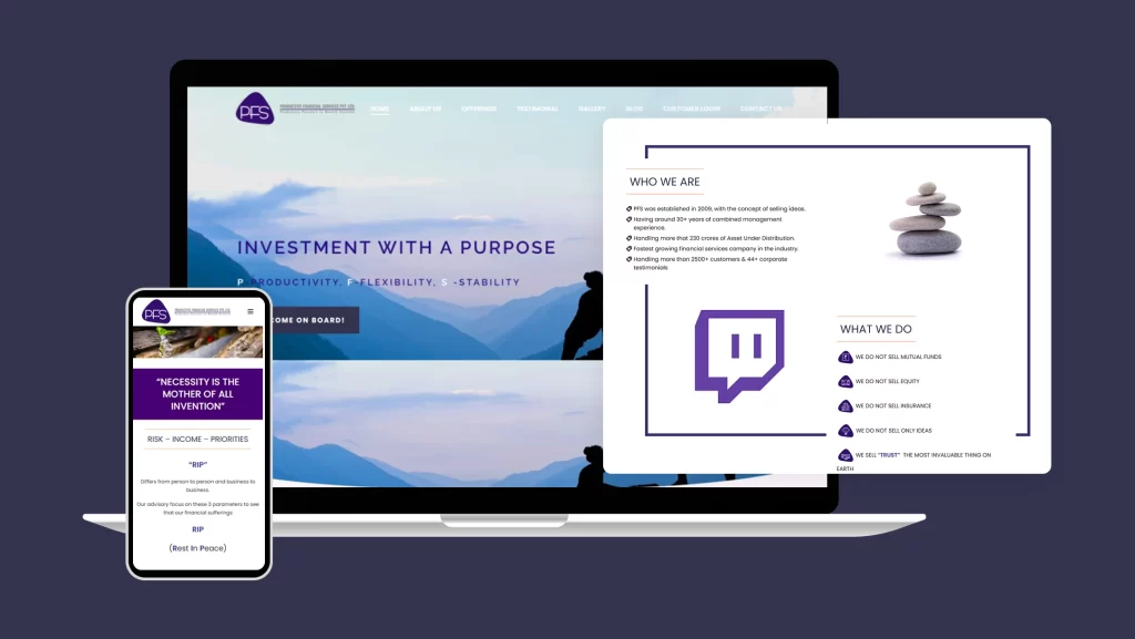 Productive Financial partnered with us to design and develop a clean, responsive, and performance-focused website aligned with the brand’s financial positioning. After understanding the business model, service philosophy, and audience expectations, the team structured a logical content hierarchy to present financial concepts in a simplified yet authoritative manner. The development process included requirement gathering, UI planning aligned with financial branding, structured content flow for Idea Factory concepts, integration of contact and enquiry forms, and full responsiveness across devices. Special focus was given to performance optimization, fast loading speed, and clean design aesthetics to build user trust and credibility.