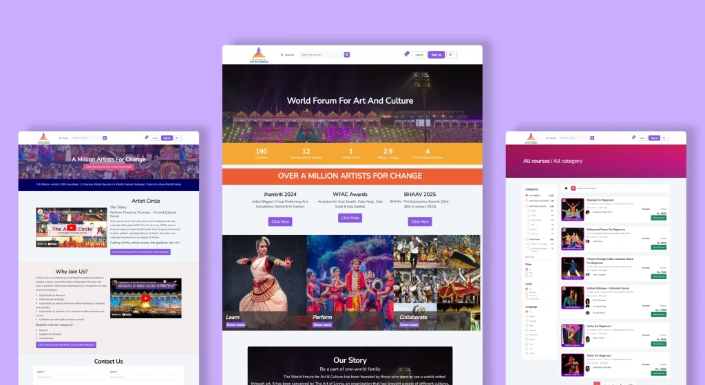 The Learning Management System (LMS) successfully brought WFAC’s vision to life, providing a global platform for learning, preserving, and collaborating on traditional art forms. The system has enabled seamless access to live and self-paced courses, fostering a thriving community of artists and learners across cultures.