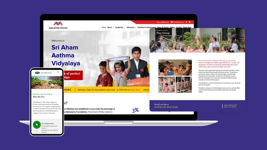 Sri Aham Aathma Vidyalaya, a well-established ICSE school in Bengaluru with a legacy of providing holistic education since 2003, needed a modern, informative, and structured website to represent its academic offerings, pedagogical values, infrastructure, admission process, news/events updates, and facility highlights. The objective was to improve the school’s online visibility, provide clear guideline information for parents and students, and strengthen engagement with stakeholders including prospective families, current students, and community members.